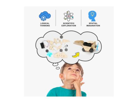 5 in 1 STEM Model Car DIY Kit wooden building toys can be painted and decorated to make them unique, and the finished product is very suitable for display on a table, shelf or showcase in a children’s bedroom, playroom or study area.