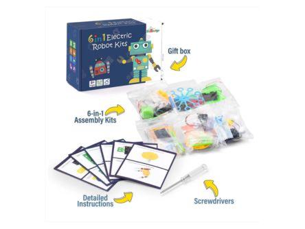 • 6 in 1 DIY STEM Robotics Kit inspires young inventors to build their models.